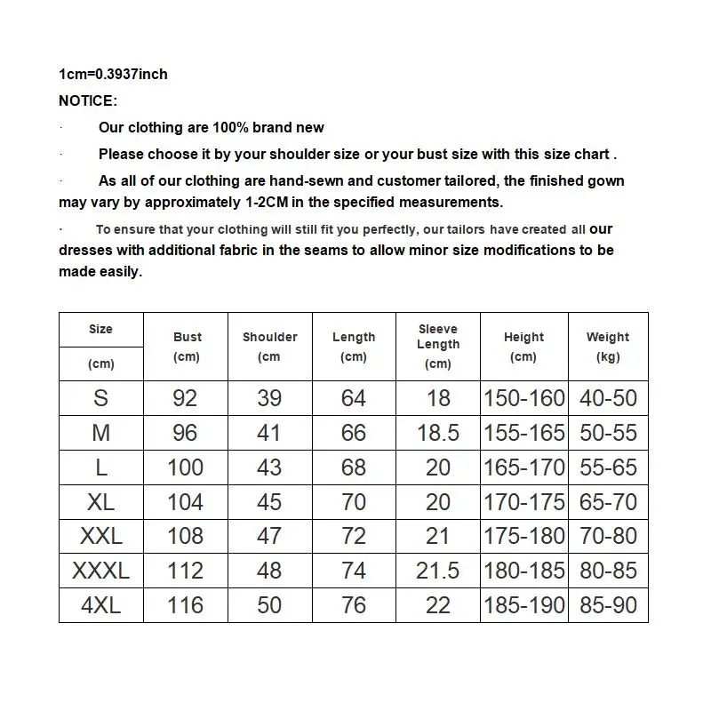 Sleeve Length(cm) | Short(4 – 16 Inch) |